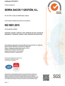 Our company is a member of ITENE ( Technologic Institute for packing). At the same time we are holder of Sanitary Registration, which permits to be at current in all referred to sanitary security for feeding. In the other side, we also are member of the Association EUROJUTE, which guarantee a good selection of our suppliers.