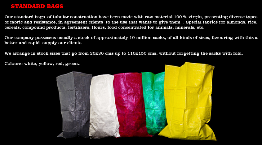 Usually we have in stock more than 10 millions bags (in different types and sizes) which permits us to guarantee a good service to our clients well in potatoes, fertilizer, flours, rice, etc. -